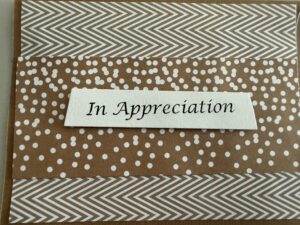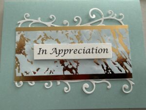 Always looking for a good cause to use these well-made cards, Linda offered to make the cards for the Employee Celebration Committee’s thank you notes. Linda has also produced cards for the HCC residents and held classes for others to share the joy in making these highly stylized cards.